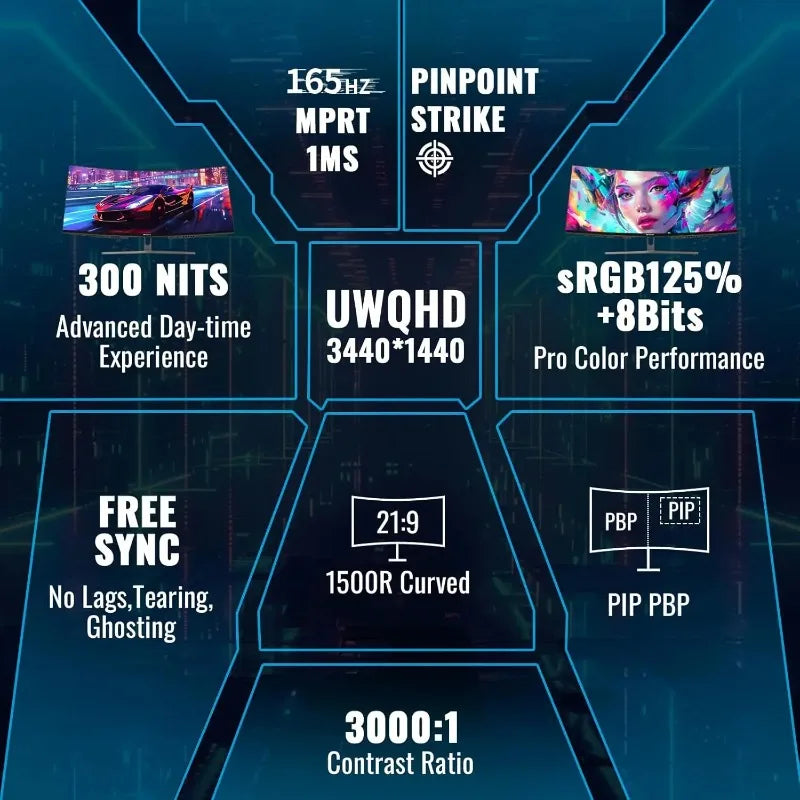 34” Curved Ultrawide Gaming Monitor – UWQHD 3440×1440, 165Hz, 1500R, HDR