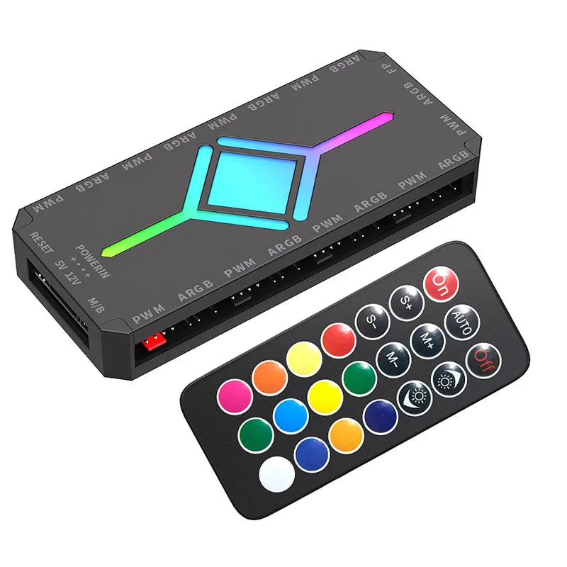 Simplify your PC cooling and lighting setup with the TEUCER ARGB PWM fan hub, designed to control up to 9 case fans from a single hub. Supporting 5V 3-pin ARGB lighting and 4-pin PWM fan control, this hub makes cable management cleaner while delivering synchronized RGB effects and stable fan performance.
